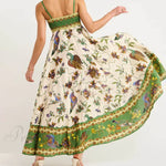 Strål i solen: Nyd solens varme og udtryk din stil i vores Sun-Drenched-kjole med et unikt print, smocket ryg og lommer. Denne kjole er designet til at få dig til at skinne som en solstråle.