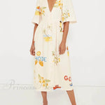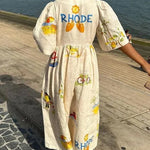 Unik midikjole med blomsterprint og pufærmer, folkestil, ideel til fester