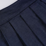 Sæt med plisseret nederdel og bindebånd foran i ensfarvet strik