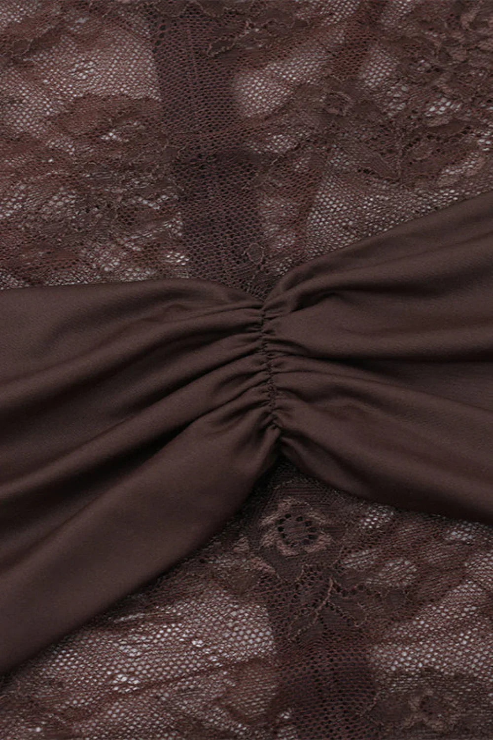 Sexet, gennemsigtig blondekjole med lange ærmer og bodycon-print