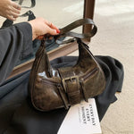 Skuldertaske i PU-læder med retro bælte