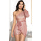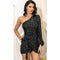 Damecocktailkjole – Slim fit – Paillettestof – Asymmetrisk skulder – Pufærmer – Asymmetrisk kant – Bindebånd i taljen