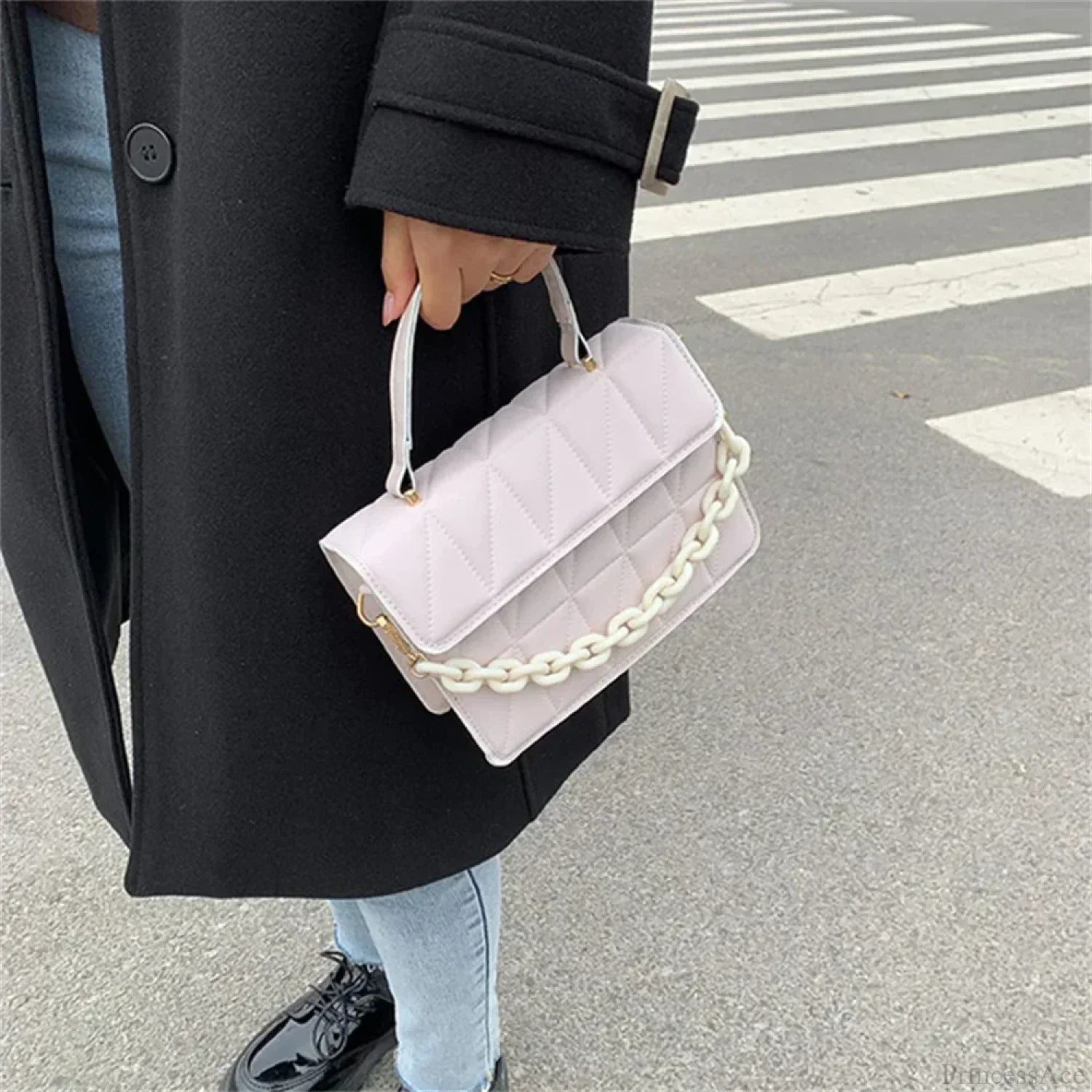 Trendy firkantet skuldertaske i PU-læder