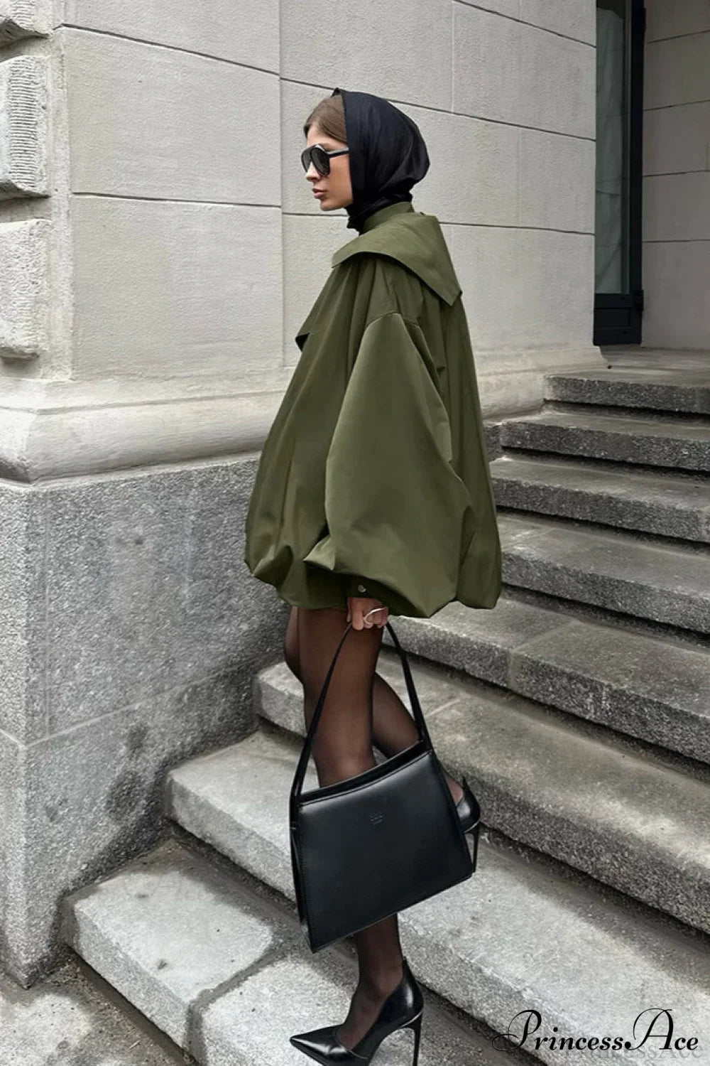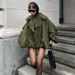 Unik vintage grøn løstsiddende, slankende frakke