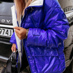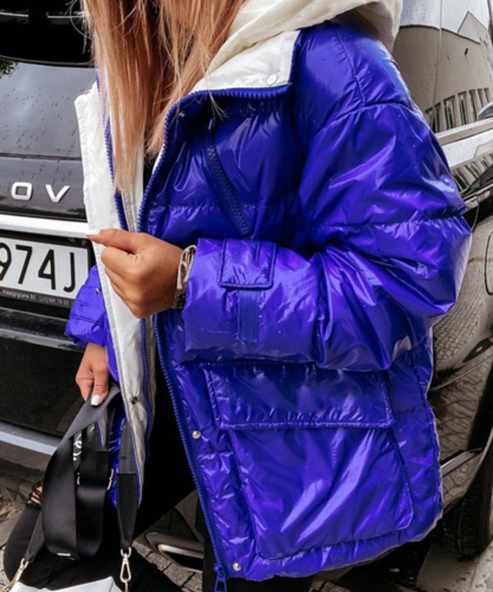 Træd ind i rampelyset med vores Radiant Blue Puffer Jacket, den banebrydende tilføjelse til din vintergarderobe, der nægter at gå på kompromis med varme eller stil. Denne jakke er elegant, lys og dristig og har en metallisk blå glans, der vil vende hoveder, uanset hvor du går hen. Foret med et hyggeligt cremefarvet interiør er jakken ikke kun et statement-stykke, men også et behageligt paradis mod kulden.